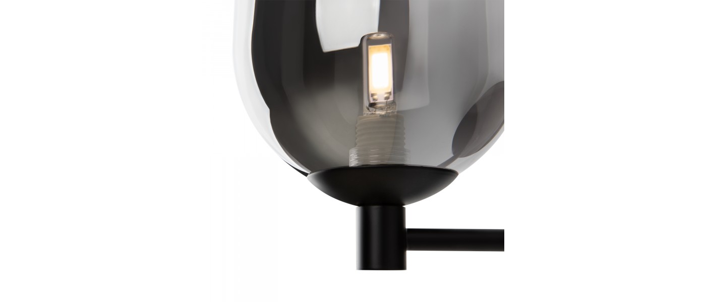 Арматура из металла матового черного цвета. Плафон из стекла с окрасом растяжка. Цвет дымчатый. Модификация — настенные, потолочные и настольные светильники. Источник света — лампа. Цоколь G9. ..