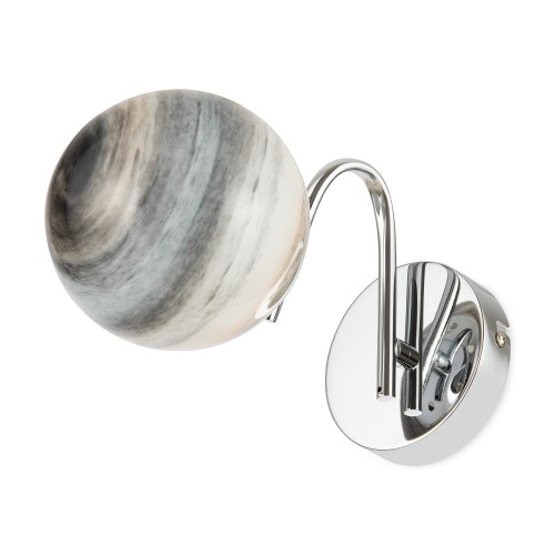 Хромированная металлическая арматура. Плафоны выполнены из дымчатого стекла. Гальваническое напыление создает зеркальный эффект. Плафоны крепятся на скобы, что облегчает эксплуатацию. Источник света – лампа с цоколем E14...