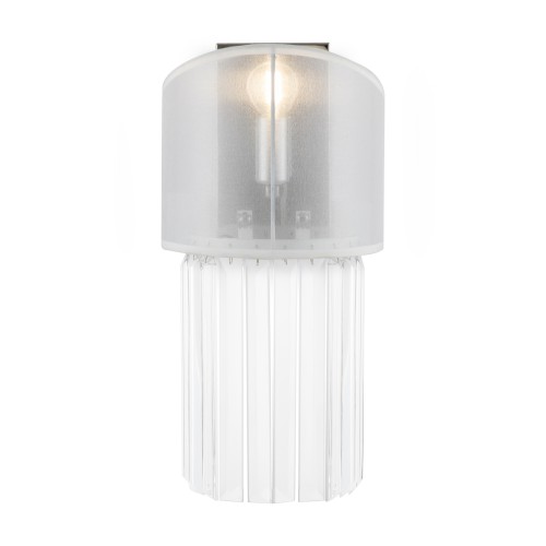 Арматура из металла. Цвет – латунь и никель. Стеклянный декор в двух вариантах: фактурный с эффектом «замороженного стекла» и глянцевый дымчатого оттенка. Источник света – лампа G9...