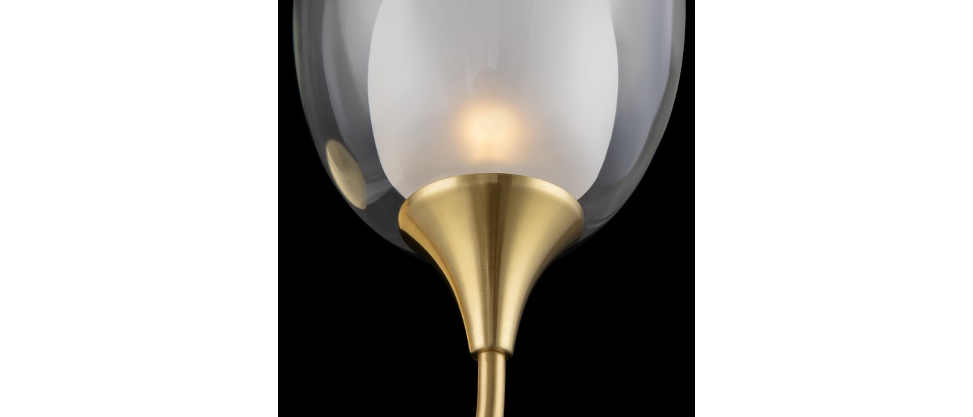 Металлическая арматура оттенка матового золота. Отдельные элементы выкрашены в черный цвет. Плафоны из стекла янтарного оттенка. Оригинальная вытянутая форма плафонов. Регулируемая высота подвеса...