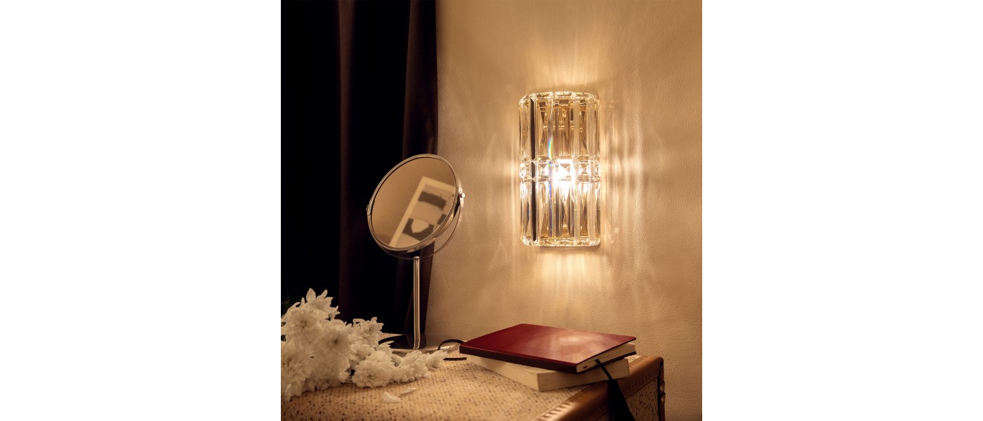 Материал арматуры – металл, оттенки – хром и золото. Декор – прозрачные стек лянные кристаллы. Архитектурная огранка декоративных элементов. Цоколь Е14...