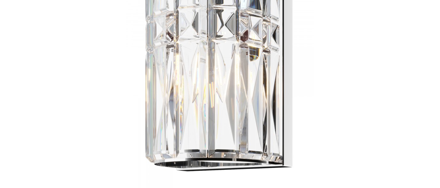 Материал арматуры – металл, оттенки – хром и золото. Декор – прозрачные стек лянные кристаллы. Архитектурная огранка декоративных элементов. Цоколь Е14...