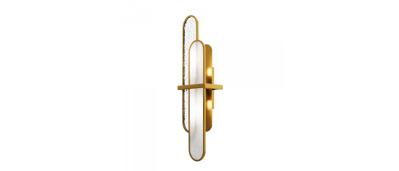 Металлическая арматура гальванизирована в цвет золота. Декор – пластины из натурального камня с текстурным рисунком. Сочетание прямоугольных линий и округлых элементов в дизайне. Цоколь Е14...