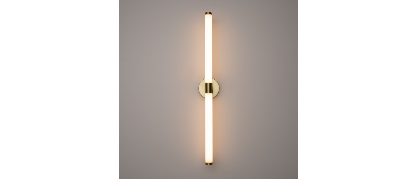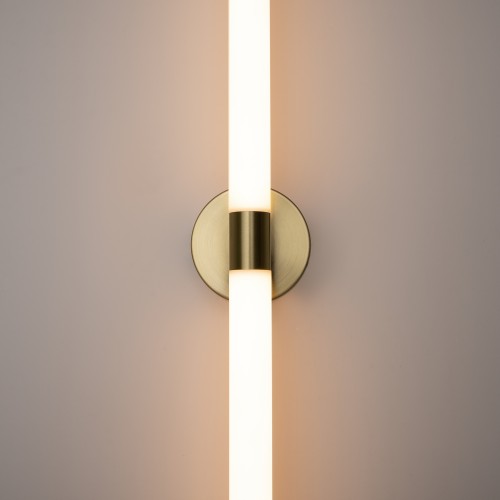 Материал арматуры – алюминий, цвет – золото. Настенные модели в трех оттенках арматуры: золото, черный, белый. Плафоны-трубки из матового акрила равно мерно распределяют свет. Трендовая асимметрия в дизайне люстр. LED-источники света с цветовой температура 3000К...