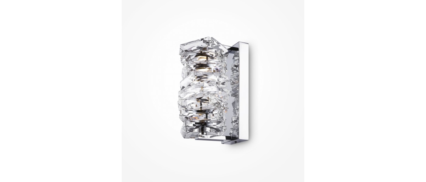Арматура из нержавеющей стали и стекла, цвет арматуры – хром. Фактурный плафон с декором из стеклянного массива. Источник света – светодиоды с цветовой температурой 3000К...