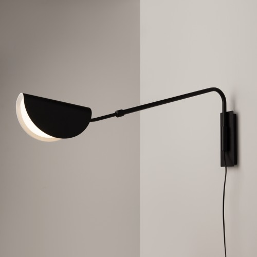 Арматура и плафоны из металла, цвет – черный. Оригинальная форма плафона с плавным контуром. Источники света скрыты под акриловым рассеивателем...