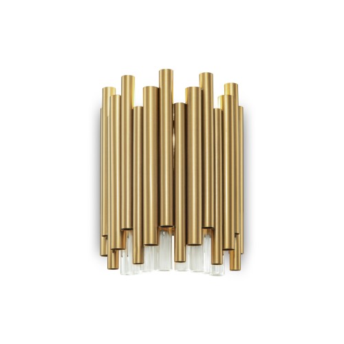 Материал арматуры – алюминий, цвет – золото. Настенные модели в трех оттенках арматуры: золото, черный, белый. Плафоны-трубки из матового акрила равно мерно распределяют свет. Трендовая асимметрия в дизайне люстр. LED-источники света с цветовой температура 3000К...