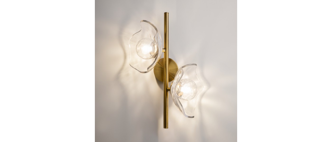 Арматура - металл, цвет - латунь. Плафоны-соцветия из литого стекла в плавных формах. Эффектные световые блики на плавных рельефах плафона. Источник света - лампа с цоколем G9. ..