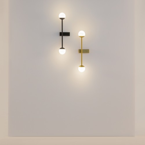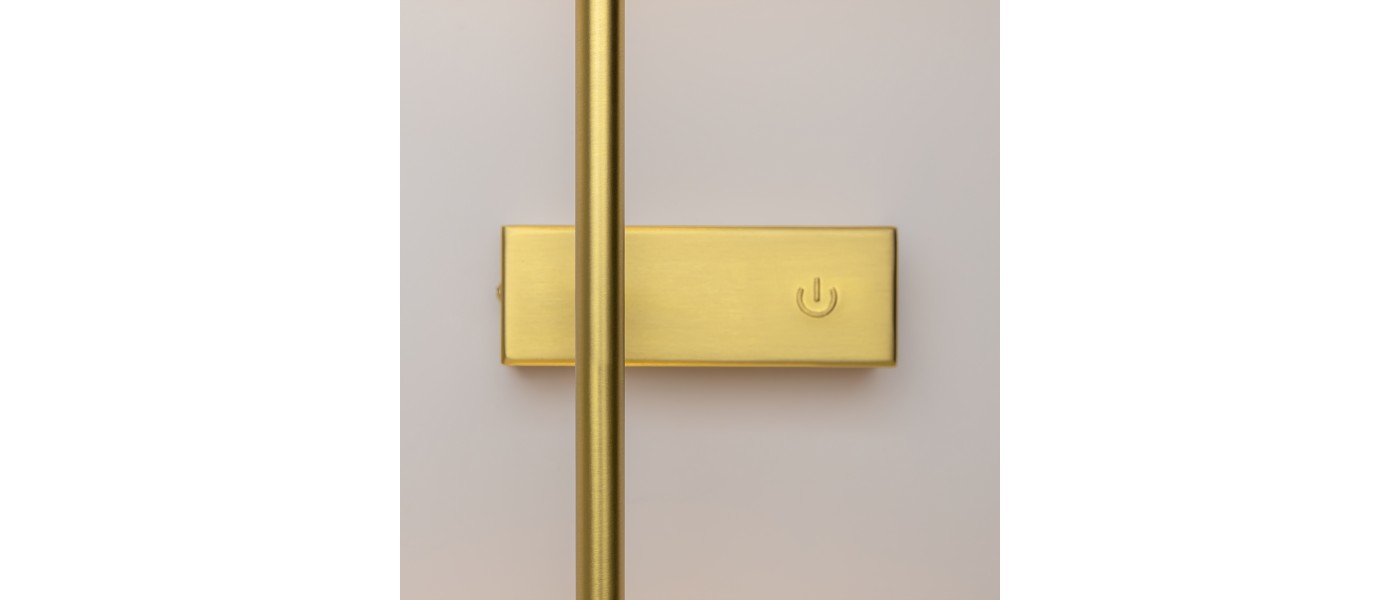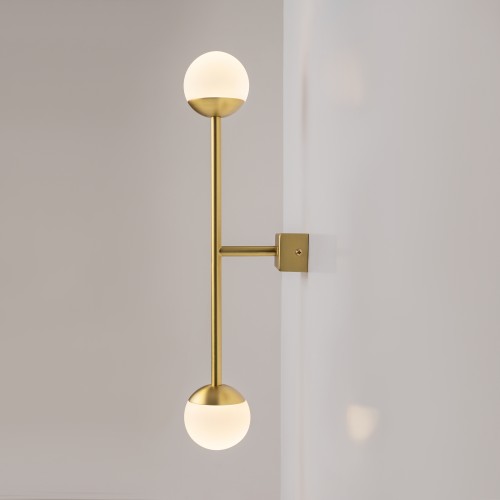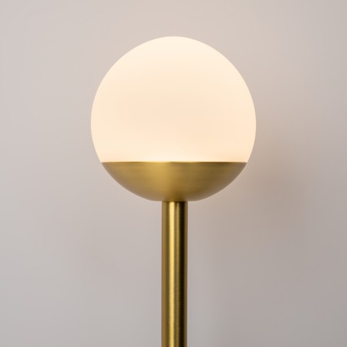 Материал арматуры — металл, цвета - латунь, черный. Плафоны-сферы из белого матового стекла. LED источник света, цветовая температура 3000К. Встроенный выключатель регулирует яркость света прикосновением с шагом 25%, 50%, 75% и 100%...