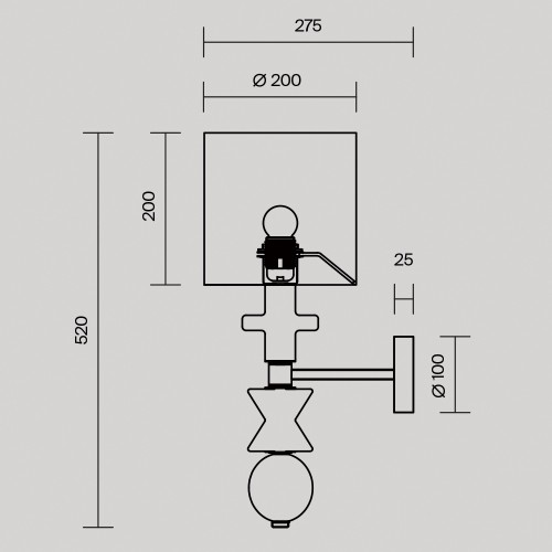 Материал арматуры — металл, цвета - латунь, черный. Плафоны-сферы из белого матового стекла. LED источник света, цветовая температура 3000К. Встроенный выключатель регулирует яркость света прикосновением с шагом 25%, 50%, 75% и 100%...
