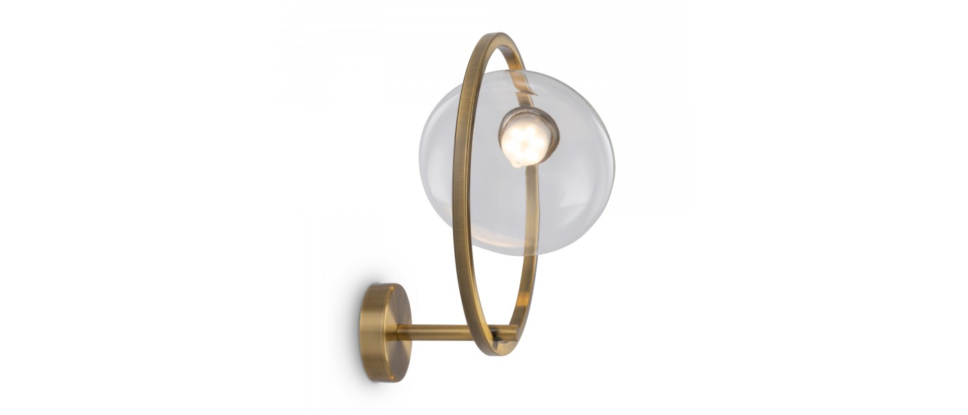 Арматура – металл, цвет – латунь. Плафон – выдувное стекло с компактным матовым рассеивателем внутри. Игра света по внешнему стеклянному элементу. Эстетика конструктивизма в дизайне. LED-источник света. Цветовая температура 3000К. Регулируемая высота подвесного светильника...