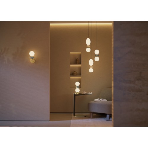 Основное вдохновение Glampimg серии — бежевые оттенки и пористая текстура травертина. В серии представлены: подвесной светильник на 5 ламп, одиночный подвесной светильник, два торшера на 1 и 3 лампы, настольный светильник, а также множество настенных светильников с сменным или встроенным источником ..