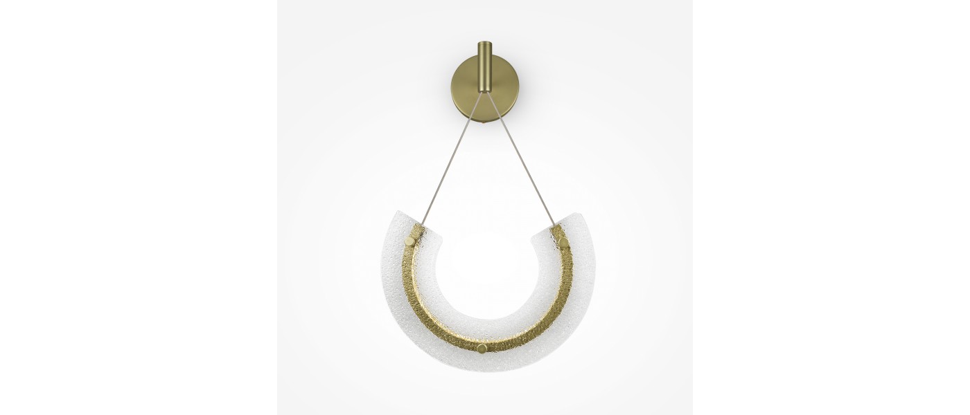 Металлическая арматура в золотом цвете. Декор — фактурное прозрачное стекло. Дизайн, вдохновленный ювелирным искусством Мезоамерики. LED-источник света. Цветовая температура 3000К...