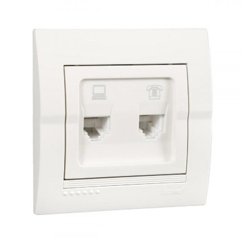 Розетка 2-ая комп. + тел. Lezard Deriy белая 702-0202-143