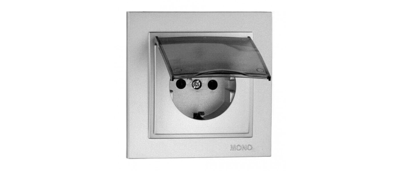 Розетка 2К+З Mono Electric Despina 16A 250V с крышкой винтовое подключение серебро 102-212121-118