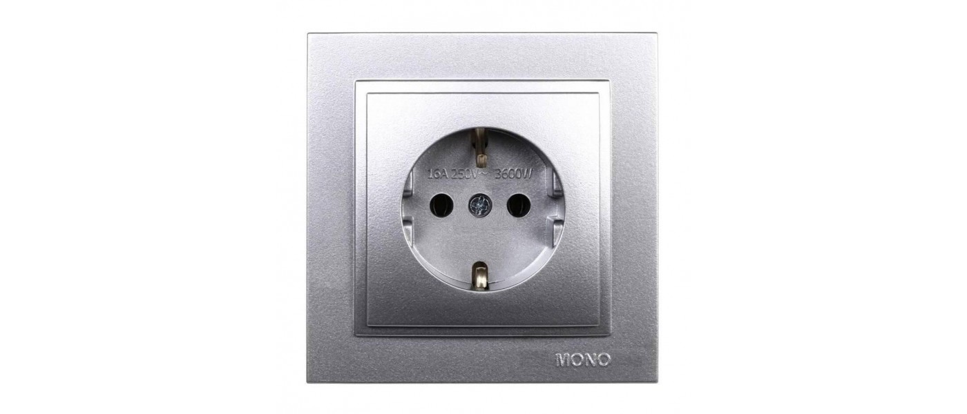 Розетка 2К+З Mono Electric Despina 16A 250V винтовое подключение серебро 102-212121-117