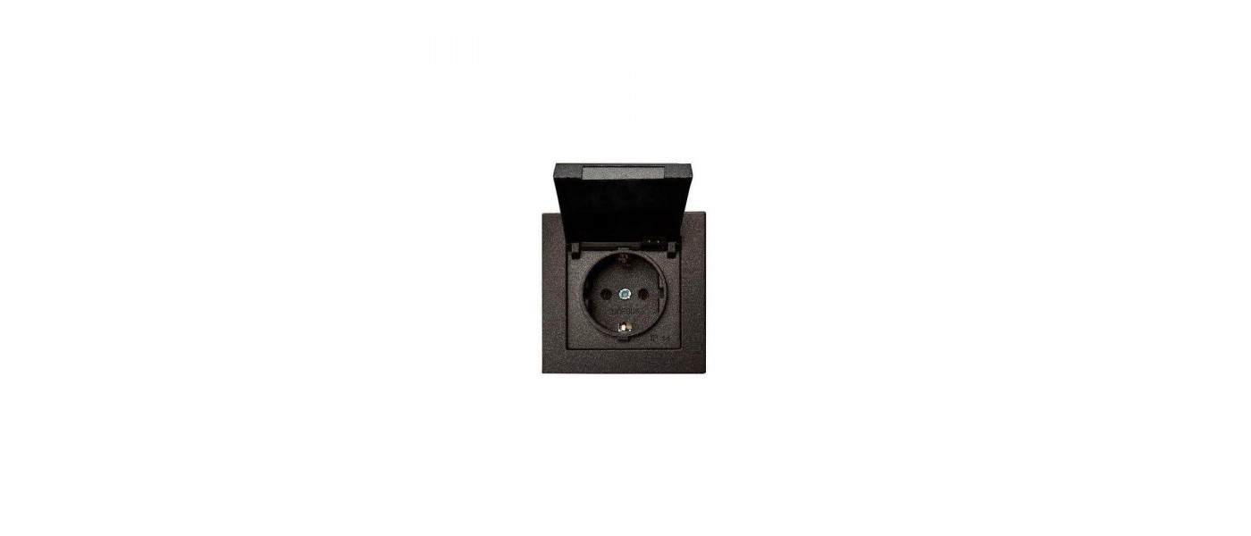 Розетка 2P+E Liregus Epsilon с крышкой антрацит 28-1065