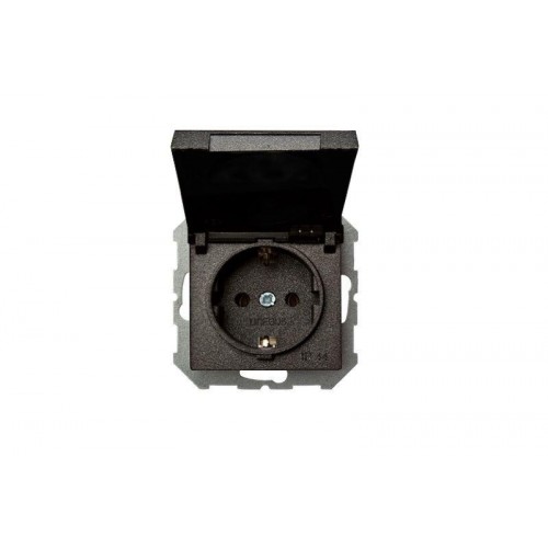 Розетка 2P+E Liregus Epsilon с крышкой коричневый 28-1363