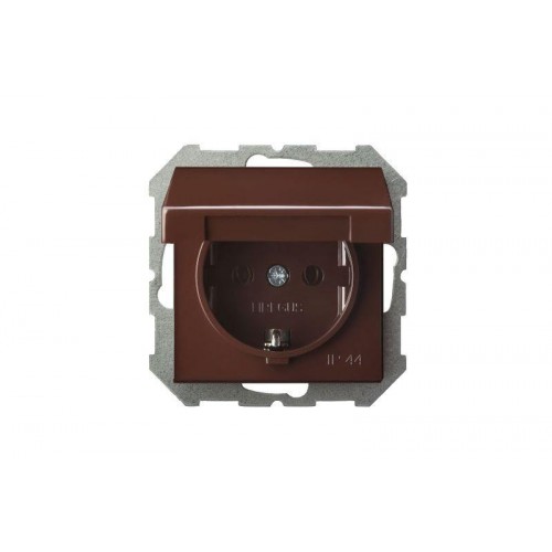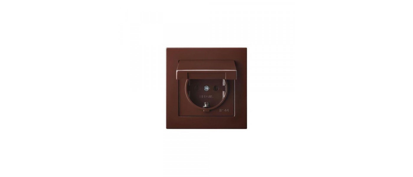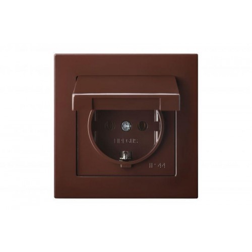 Розетка 2P+E Liregus Epsilon с крышкой коричневый 28-1366