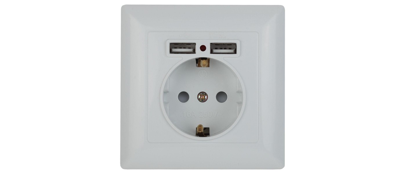 Розетка ЭРА Intro Solo Schuko P+E 16A 250V со шторками 2хUSB белый 4-410-01 Б0043403