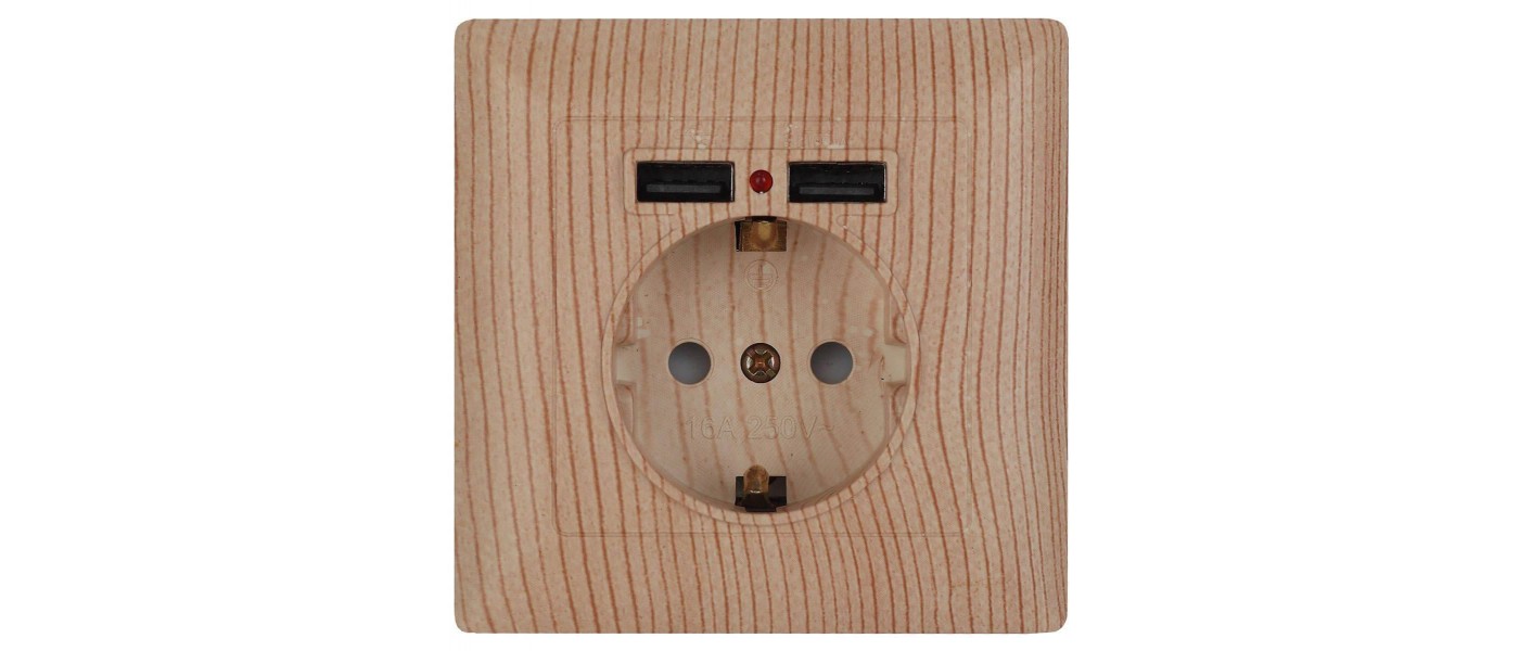 Розетка ЭРА Intro Solo Schuko P+E 16A 250V со шторками 2хUSB дерево 4-410-11 Б0043409