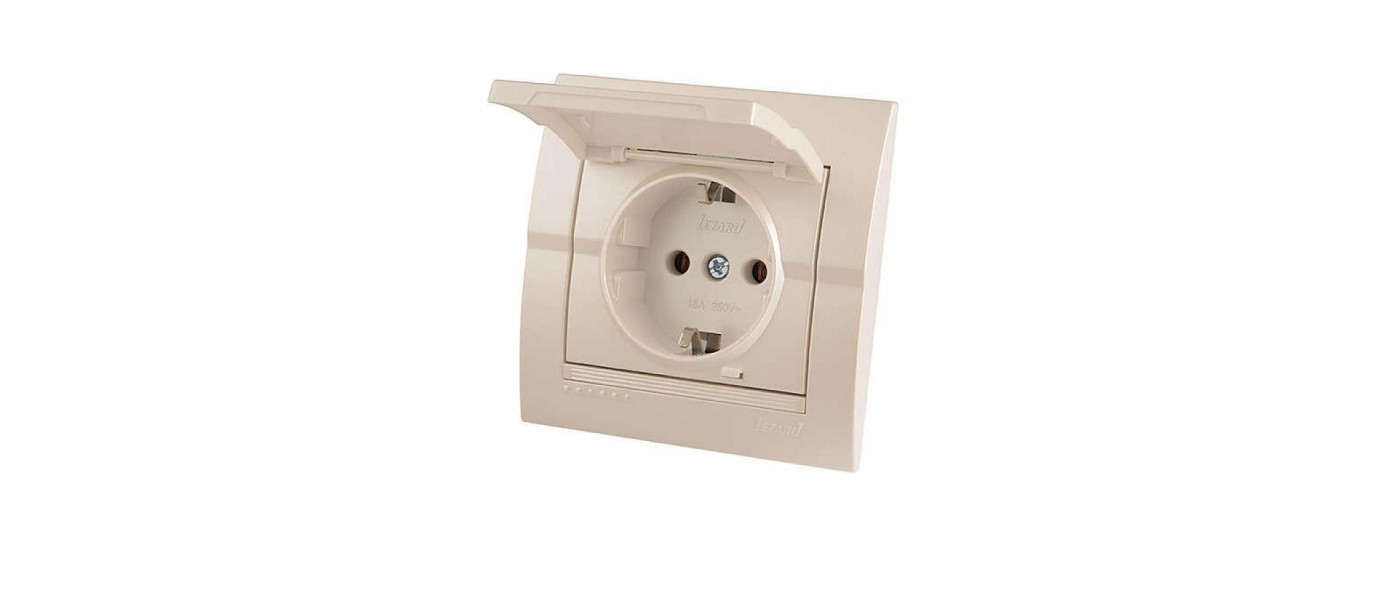 Розетка с зазем. с крышкой Lezard Deriy кремовая 702-0303-123