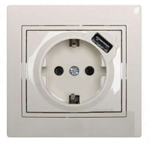 Розетка с зазем. + USB-разъём Lezard Mira кремовая 701-0303-181