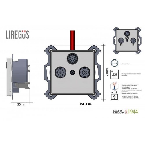 ТВ-розетка оконечная TV/R/SAT Liregus Epsilon шампань 28-3146