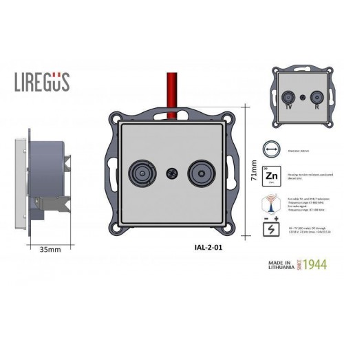 ТВ-розетка двойная оконечная Liregus Epsilon серебро 28-1823