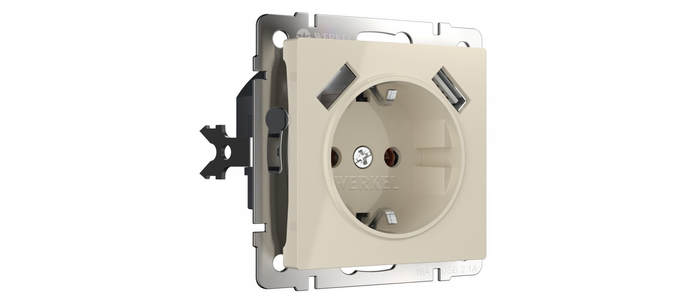 WERKEL WL03-SKGS-USBx2-IP20 / Розетка с заземлением, шторками и USBх2 (слон. кость) a033476 W1171503