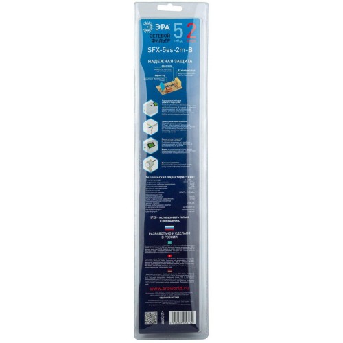 Сетевой фильтр ЭРА 5гн 2м с/з SFX-5es-2m-B Б0044020