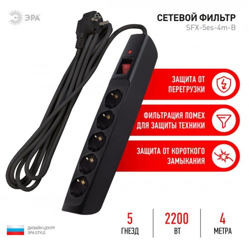 Сетевой фильтр ЭРА 5гн 4м с/з SFX-5es-4m-B Б0044022