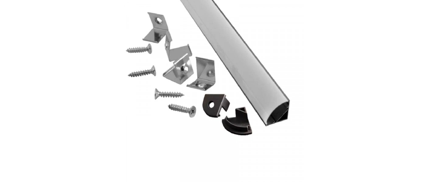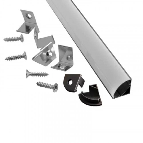 Профиль RSP-45798 алюминиевый угловой, с круглым экраном (2000х16*16мм, полный комплект: 2 заглушки + 3 крепежа)