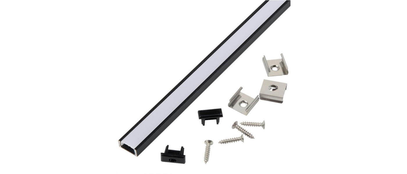 Профиль GAL-GLS-2000-7-16-B 07*16 черный (2м профиль+2м рассеиватель+ 2заглушки+4скобы с шурупами)