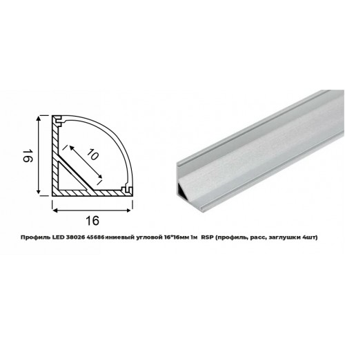 Профиль LED 45686 алюминиевый угловой 16*16мм 1м RSP (профиль, расс,загл)