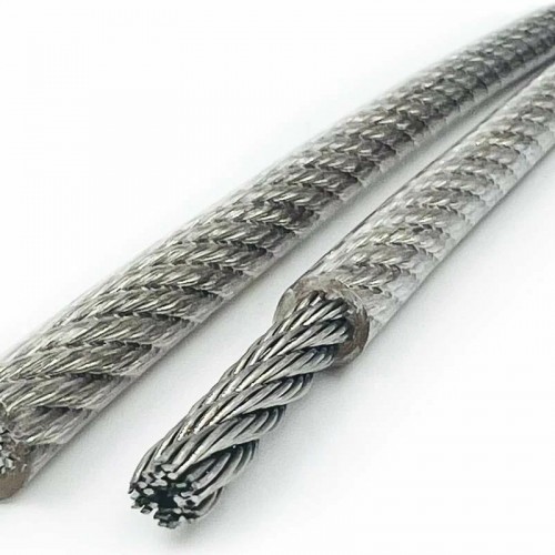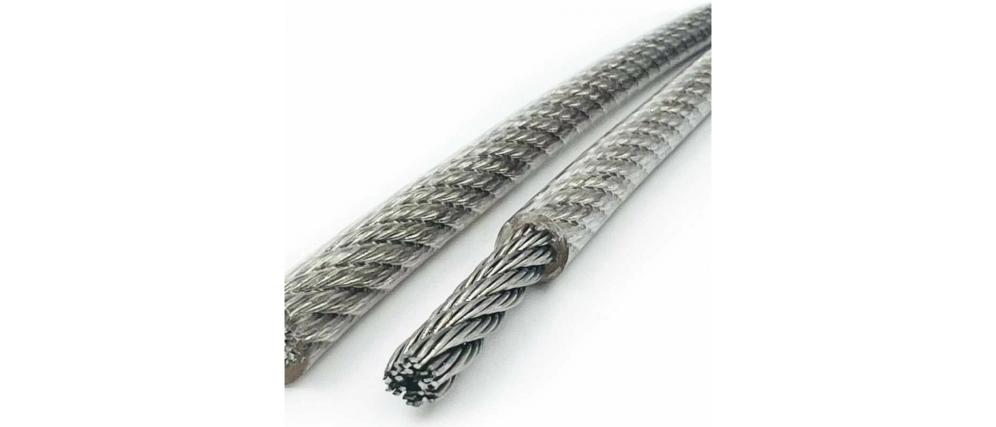 Трос нержавеющий 1,0/1,5 мм сталь А4 плетение 7х7 средней мягкости в ПВХ оплетке