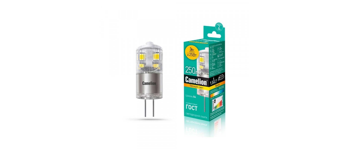 Лампа светодиодная Camelion G4 3W 3000K LED3-G4-JD-NF/830/G4 13862