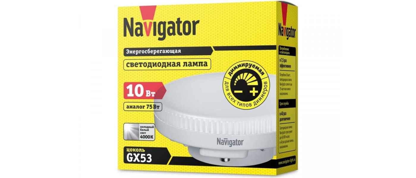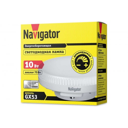 Лампа светодиодная LED 10вт GX53 диммируемая белый матовая таблетка 61632 NLL-GX53