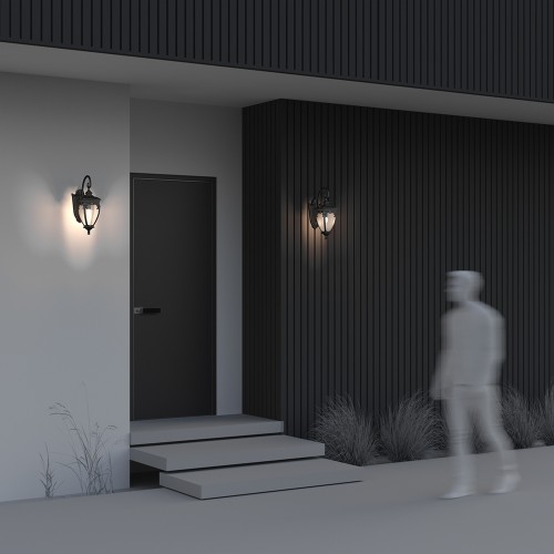 Серия представлена настенными, подвесными и напольными уличными светильниками для ламп Е27. Корпус моделей выполнен из алюминия и окрашен в два оттенка на выбор: черный с золотом или античная бронза. Светильник защищен от коррозии и перепадов температур. Декоративная технология обработки стекла PULE..