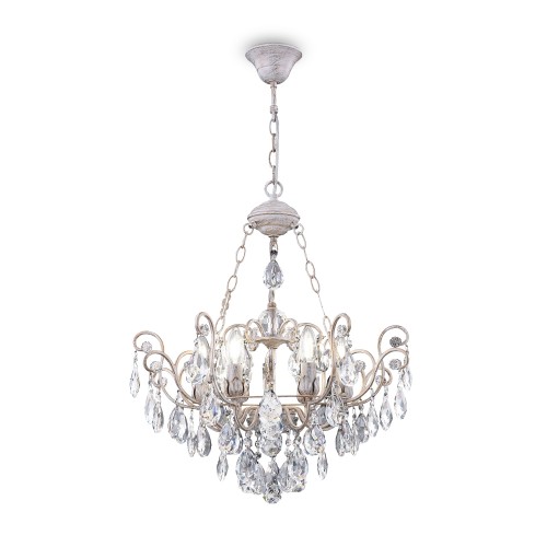 Металлическая арматура в двух оттенках: латунь и никель. Классическая форма плафона в виде свечи. Торшер и настольная лампа имеют тканевые абажуры. Белые – для арматуры цвета никель, оттенка кремовый шампань – для латунной. Декор – прозрачные хрустальные подвесы каплевидной формы. Торшер с цоколем Е..