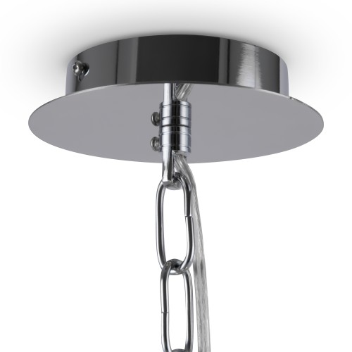 Металлическая арматура, цвет – хром. Каркас абажура – металл, декор – прозрач ный хрусталь. Потолочные модели с рассеивателем из матового стекла. Высота подвесных светильников регулируется...
