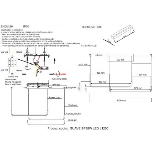 Подвесной светильник Crystal Lux SUAVE SP35W LED L1200 BLACK