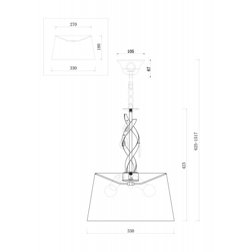 Цвет WTКоличество ламп 5Размер Ø620 x H630(890)Тип цоколя E27Тип лампы накаливания, энергосберегающаяМощность 40WОснование металлМинимальная партия 1Штук в коробке 1Вес 5..