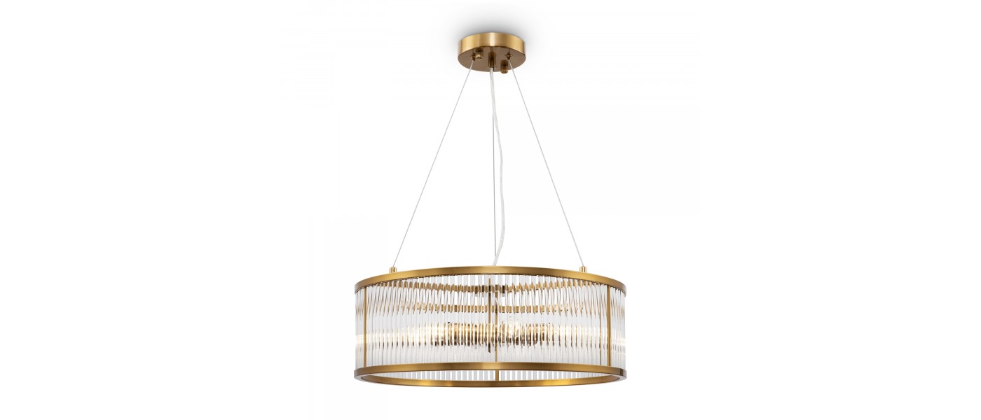 Арматура из металла. Оттенки – латунь, никель. Декор – прозрачные стеклянные трубки, зафиксированные на кольцевой арматуре (у бра – форма полусферы). Высота люстр регулируется. Источник света – лампа с цоколем Е14...