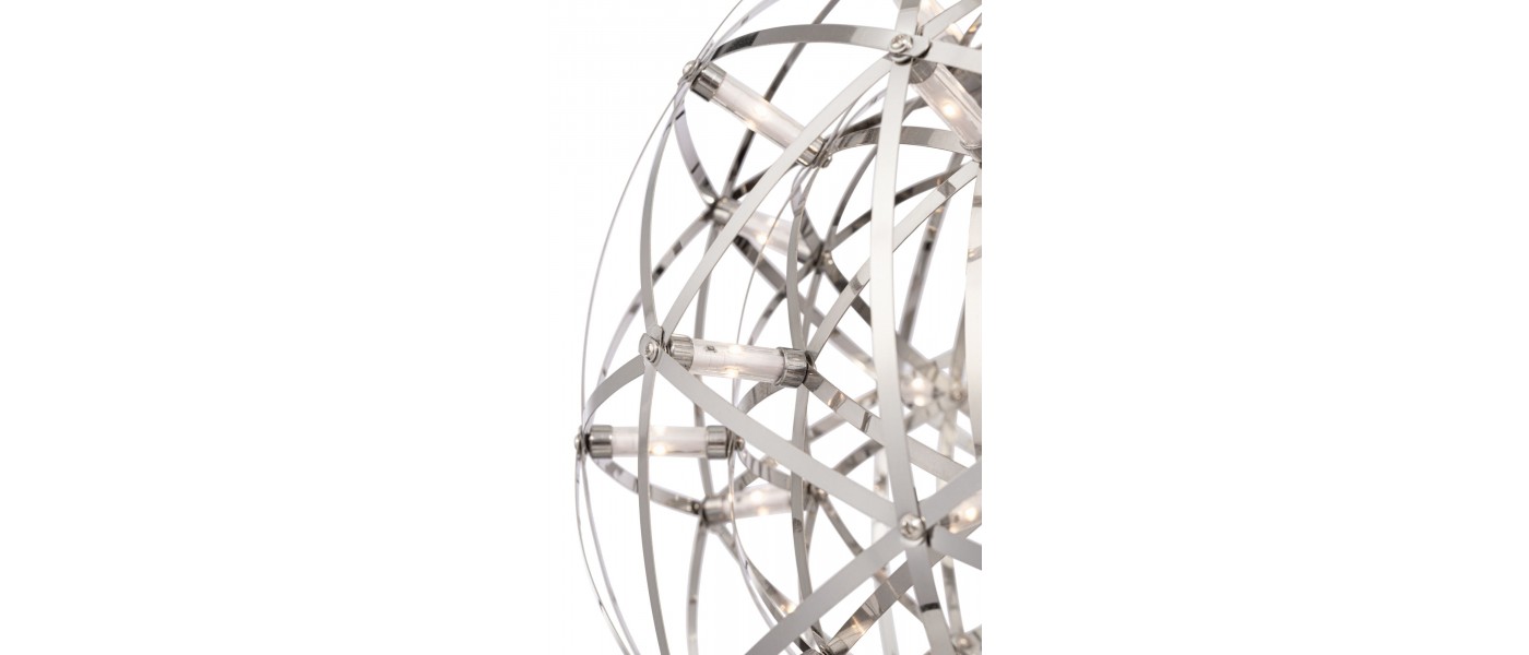 Серия Amber представляет воздушные светильники-сферы, выполненные в трендовом стиле хай-тек. Хромированная металлическая арматура и плафон, сотканный из переплетающихся лент, создают запоминающийся современный образ. Встроенные светодиоды экономят электроэнергию и красиво подсвечивают сферу. В выклю..