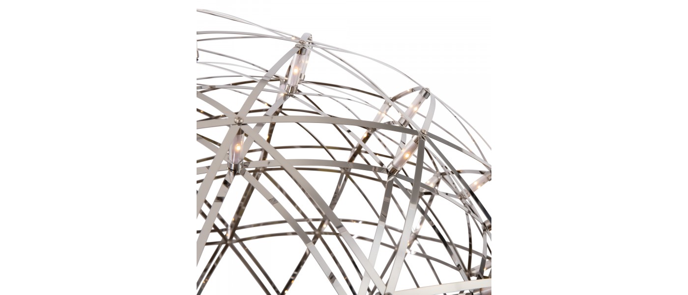 Серия Amber представляет воздушные светильники-сферы, выполненные в трендовом стиле хай-тек. Хромированная металлическая арматура и плафон, сотканный из переплетающихся лент, создают запоминающийся современный образ. Встроенные светодиоды экономят электроэнергию и красиво подсвечивают сферу. В выклю..