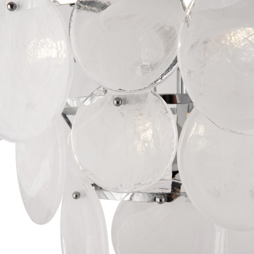 Металлическая арматура. Оттенки – латунь, хром. Оригинальный разноразмерный декор с эффектом замороженной фактуры. Материал декора – стекло. В качестве источников света используются лампы с цоколем Е14...