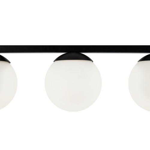 Металлическая арматура. Оттенок – латунь. Плафоны-сферы из матового стекла. Оригинальное конструктивное решение: плафоны размещены на горизонтальной или вертикальной планке. Источник света – лампа с цоколем Е27...