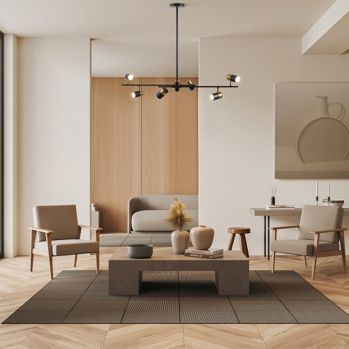 Арматура и плафоны из металла. Цвет арматуры – черный и латунь. Плафоны окрашены в черный оттенок. Актуальный лофтовый дизайн. Источник света – лампа с цоколем E27...