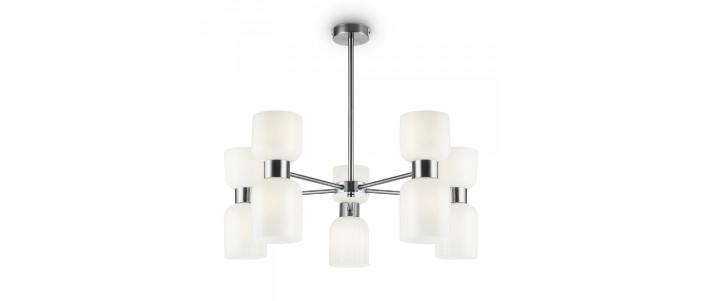 Арматура из металла. Оттенки – хром и латунь. Стеклянные плафоны в двух цветовых решениях: белый глянец и хром с зеркальным эффектом. Оригинальная форма плафонов «песочные часы», двунаправленный световой поток. Широкий ассортимент. Источник света – лампа с цоколем E27...